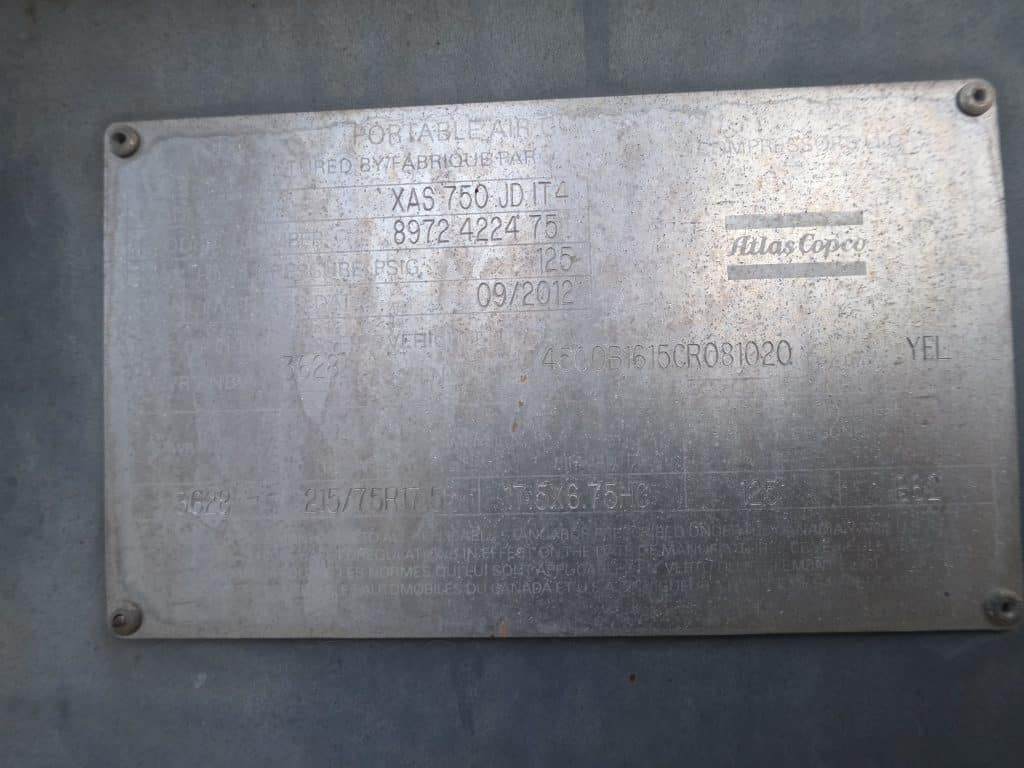 AC-102 750 CFM 2012 Atlas Copco 6.8L John Deere Engine Air Compressor