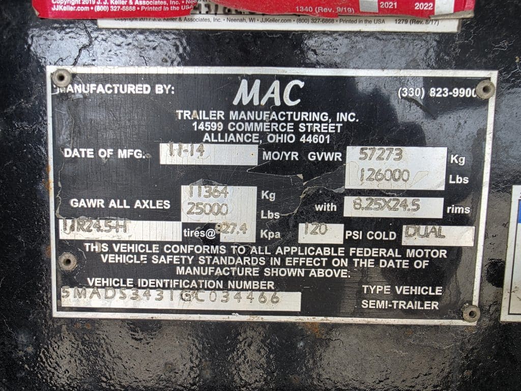 34' 2015 Mac Aluminum Tri-Axle Dump Trailer