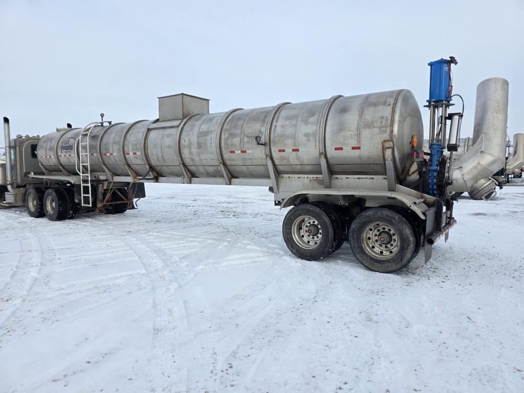 6700 Gallon Stainless Steel Straight Barrel Semi Tanker, Rear Unload, Stainless Steel Landing & Running Gear, 3 Leaf Suspension, 80% Tires, 60% Brakes, Budd Style 295/75R22.5 Alum Wheels, Outboard Brake Drums.