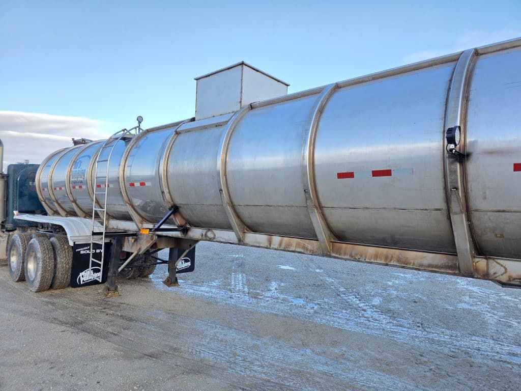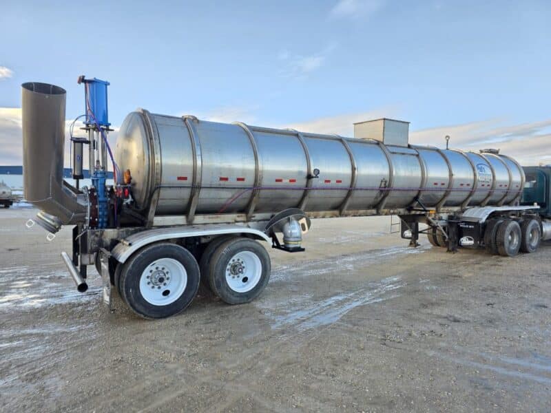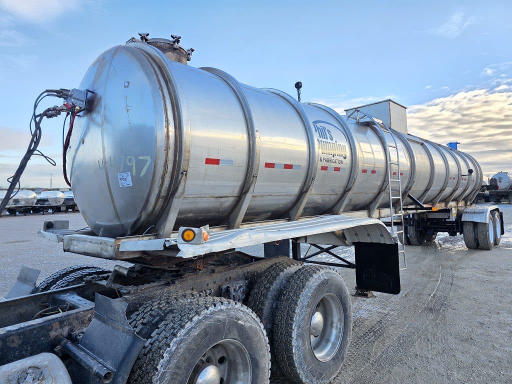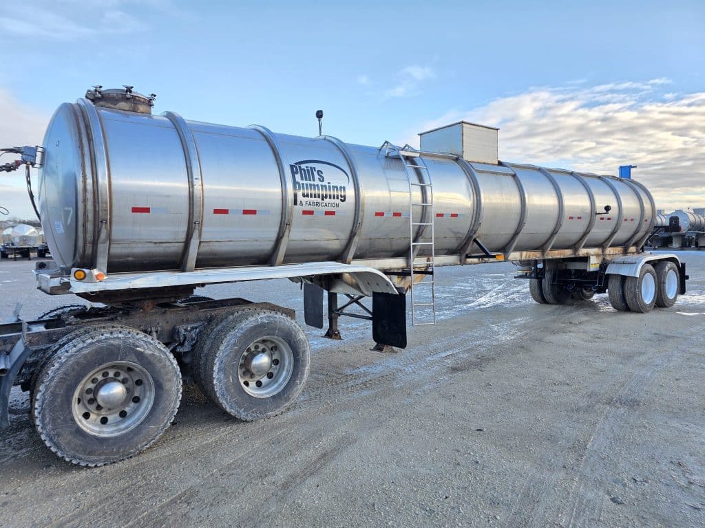 7000 Gallon Stainless Steel Straight Barrel Semi Tanker, Rear Unload, Stainless Steel Landing & Running Gear, 8 Leaf Suspension, 60% Brakes, 60% Tires, Outboard Brake Drums. 8 Budd Wheels, 285/75R24.5