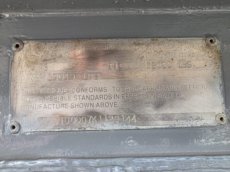 U-4811 1989 Sunshine 7000 Gallon Stainless Steel Semi Tanker