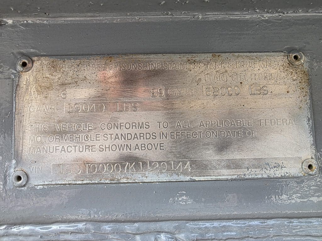 U-4832 1989 Sunshine 7000 Gallon Stainless Steel Semi Tanker
