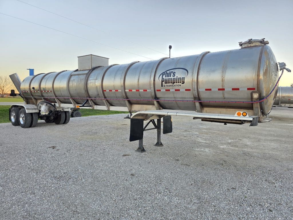 6700 Gallon Stainless Steel Straight Barrel Semi Tanker, Rear Unload, Stainless Steel Landing & Running Gear, Air-Ride Suspension, 50% Brakes, 70% Tires, Outboard Brake Drums. 8 Budd Wheels, 11R22.5