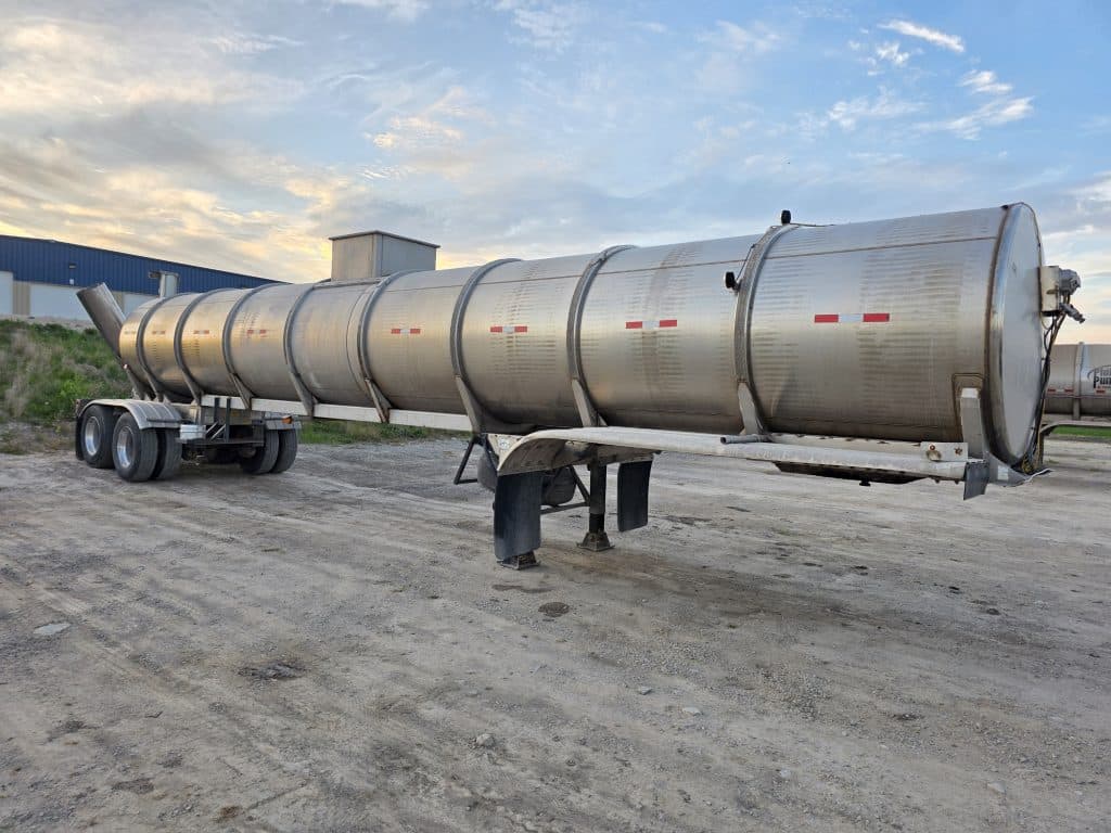 6700 Gallon Stainless Steel Straight Barrel Semi Tanker, Rear Unload, Stainless Steel Landing & Running Gear, 8 Leaf Suspension, 80% Brakes, 50% Tires, 8 Straight Hole Wheels 11R22.5 Outboard Brake Drums