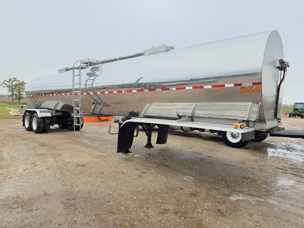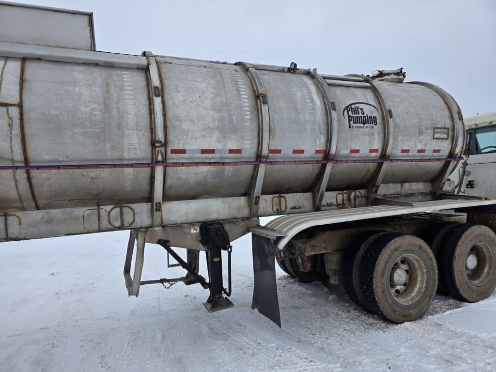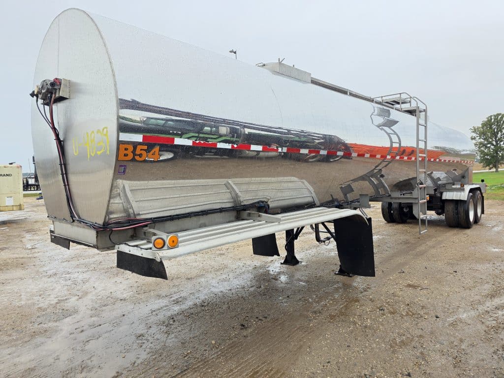 7200 Gallon Stainless Steel Straight Barrel Semi Tanker, Rear Unload, Steel Landing & Running Gear, Air-Ride Suspension, 80% Brakes, 70% Tires, Outboard Brake Drums. 8 Straight Hole Wheels, 285/75R24.5