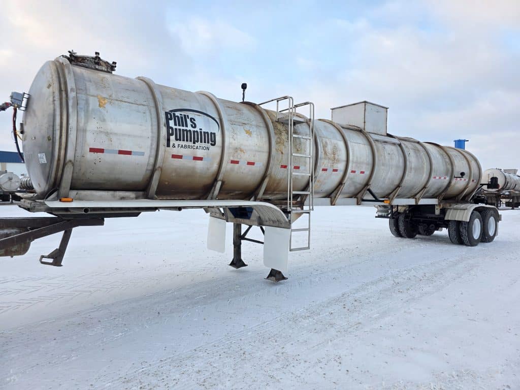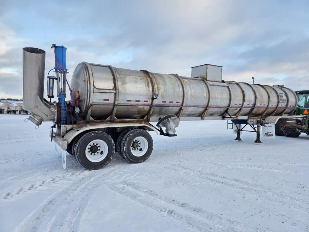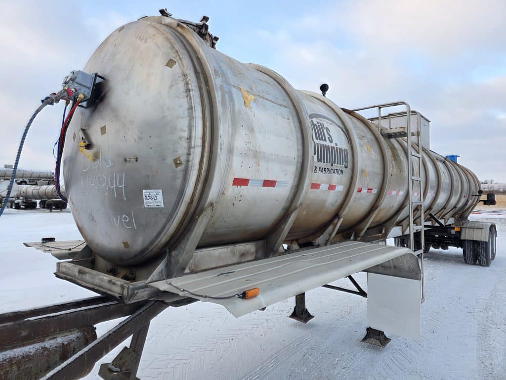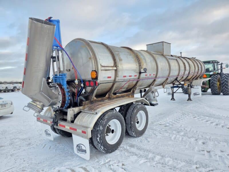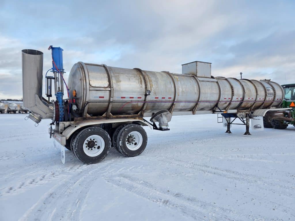 7000 Gallon Stainless Steel Straight Barrel Semi Tanker, Rear Unload, Stainless Steel Landing & Running Gear, 8 Leaf Suspension, 60% Brakes, 70% Tires, Outboard Brake Drums. 8 Straight Hole Wheels, 275/80R22.5