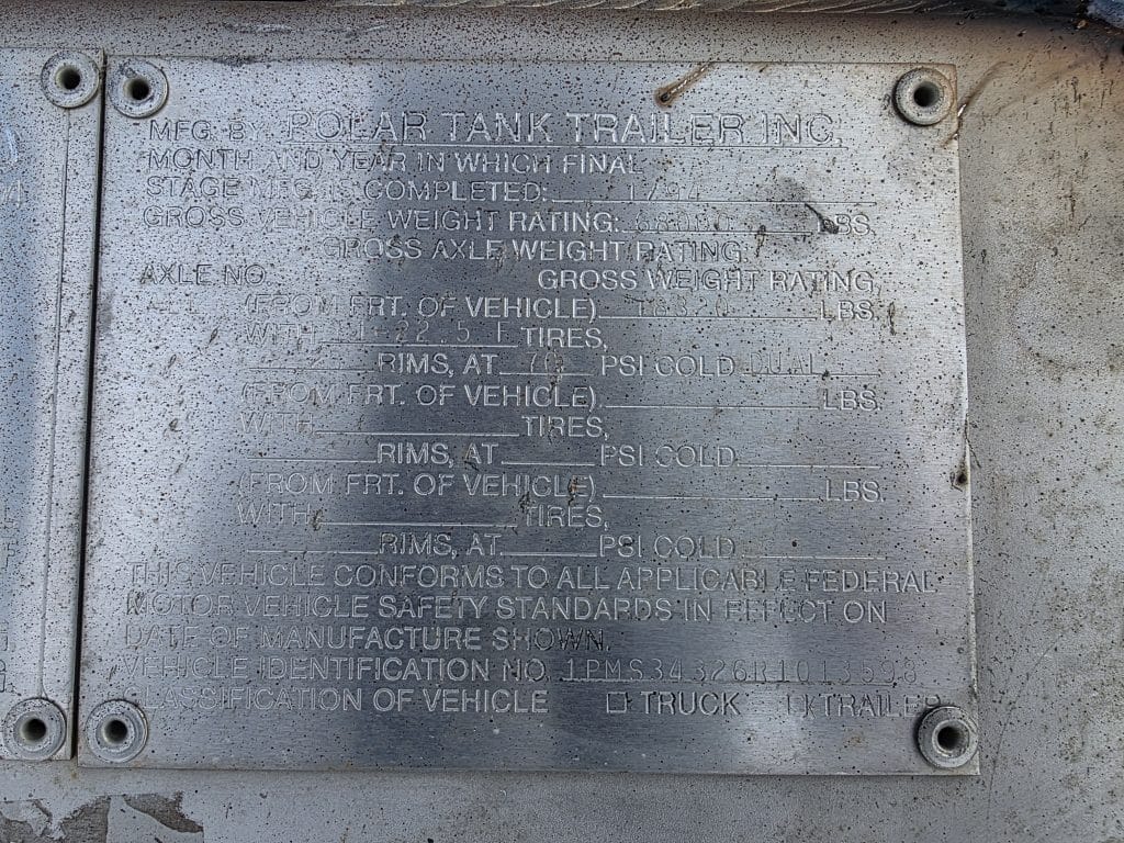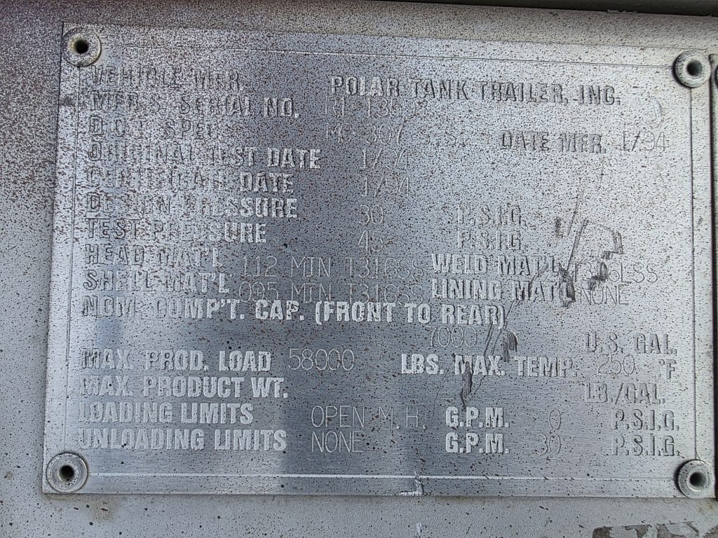U-4845 1994 Polar 7000 Gallon Stainless Steel Semi Tanker