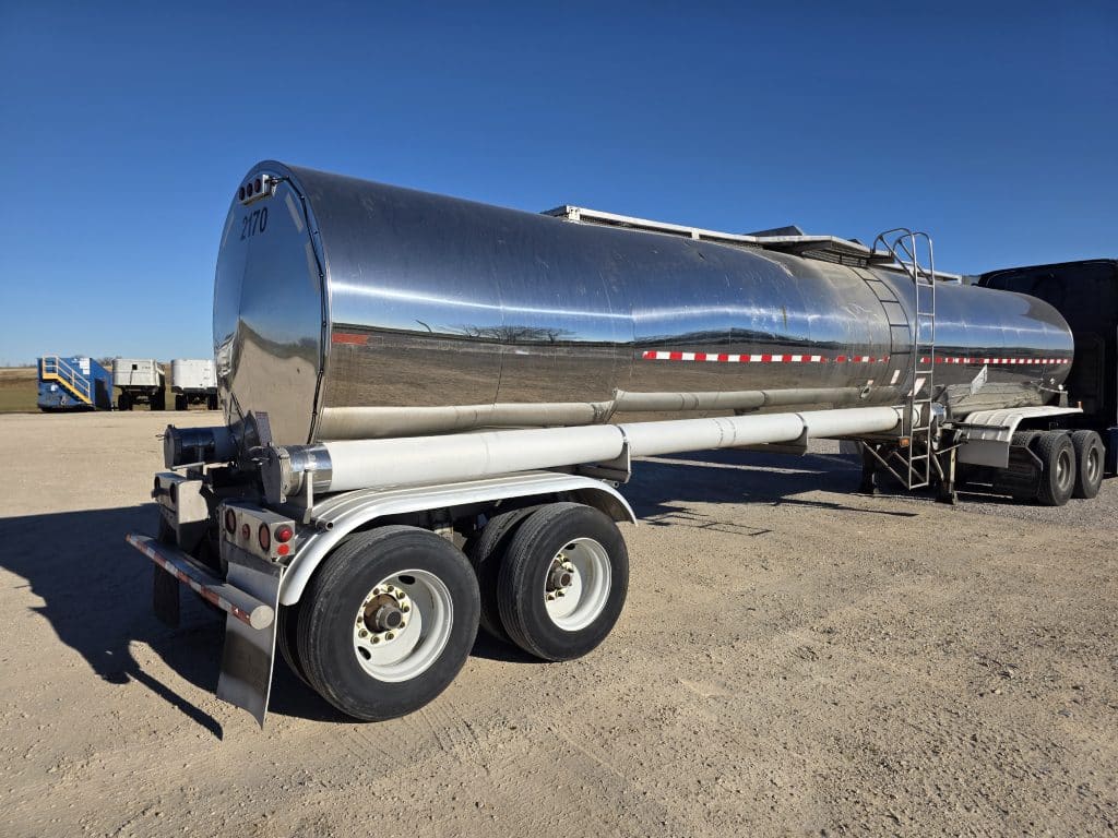 7000 Gallon Stainless Steel Straight Barrel Semi Tanker, Rear Unload, Stainless Steel Landing & Running Gear, 8 Leaf Suspension, 50% Brakes, 60% Tires, Outboard Brake Drums. 8 Straight Hole Wheels, 275/80R22.5