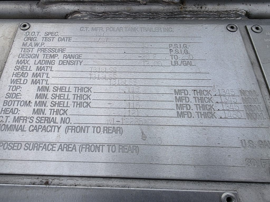U-4852 1998 Polar 7000 Gallon Stainless Steel Semi Tanker