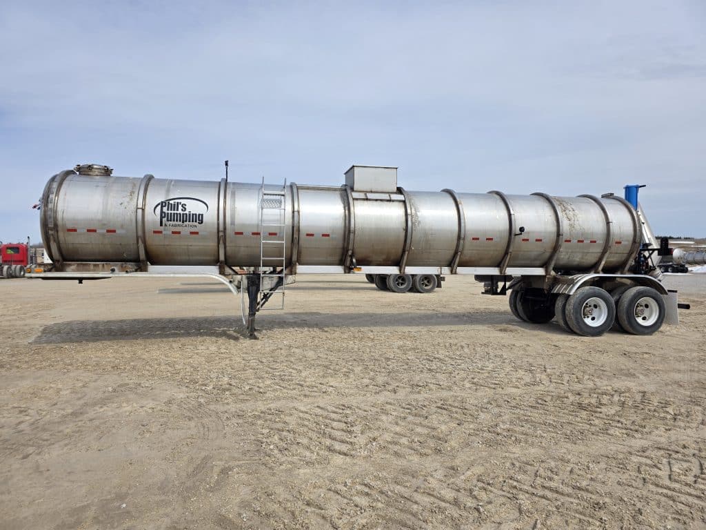 7000 Gallon Stainless Steel Straight Barrel Semi Tanker, Rear Unload, Stainless Steel Landing & Running Gear, 3 Leaf Suspension, 100% Brakes, 80% Tires, Outboard Brake Drums. 8 Straight Hole Wheels, 11R22.5.
