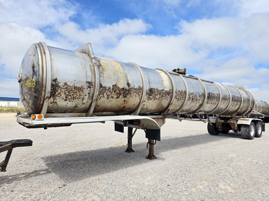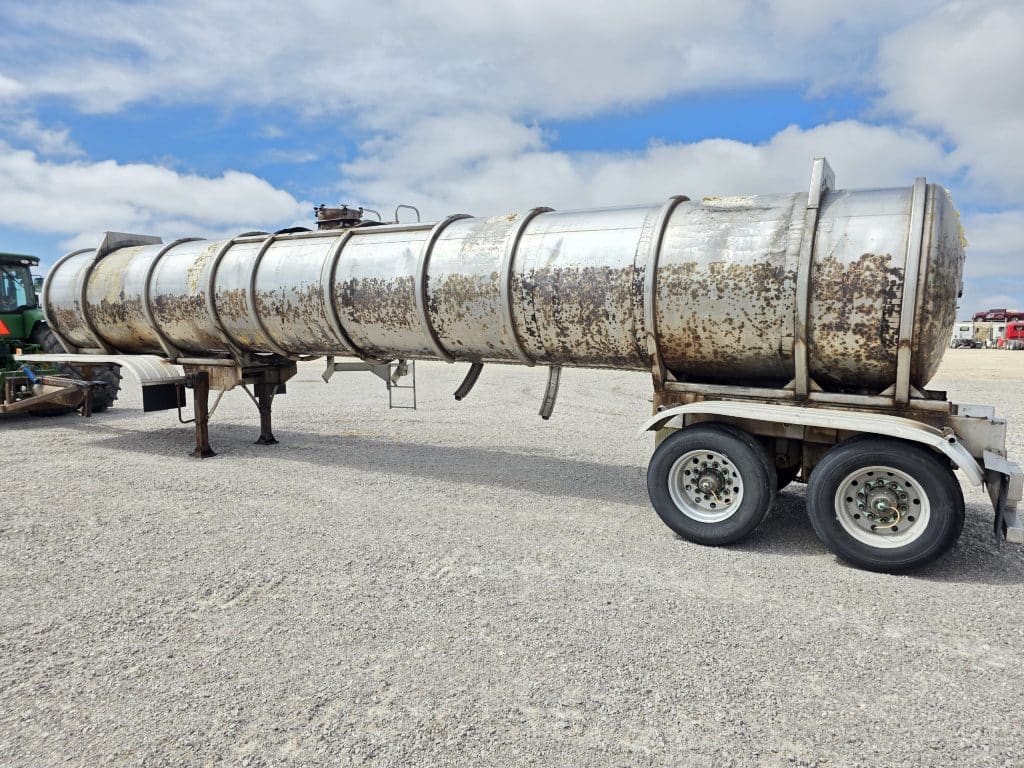 7000 Gallon Stainless Steel Straight Barrel Semi Tanker, Rear Unload, Stainless Steel Landing & Running Gear, Air-Ride Suspension, 60% Brakes, 50% Tires, Outboard Brake Drums. Straight Hole Wheels, 445/50R22.5
