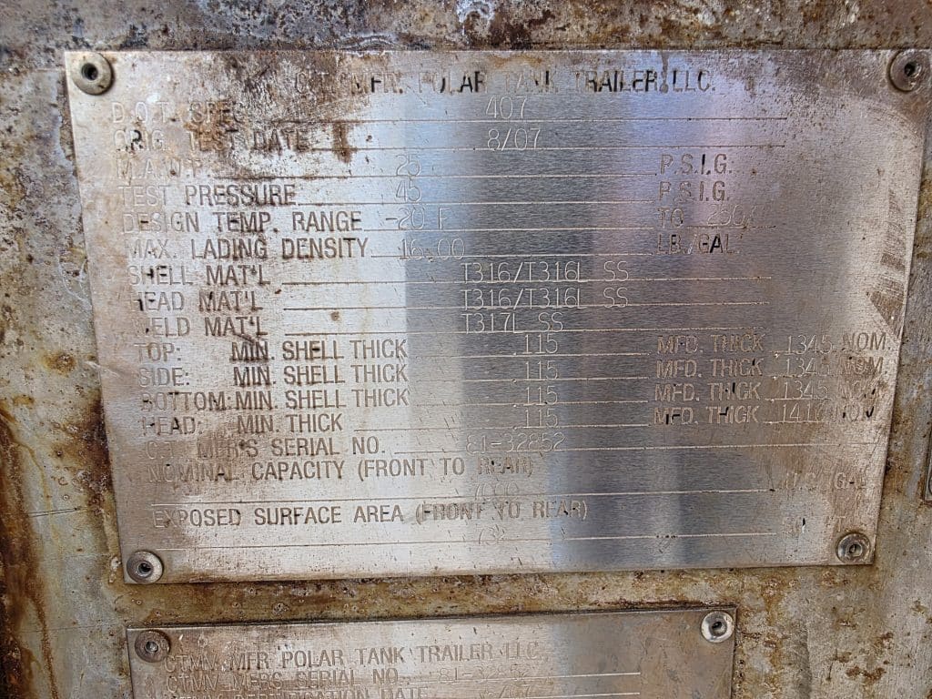 U-4868 2007 Polar 7000 Gallon Stainless Steel Semi Tanker