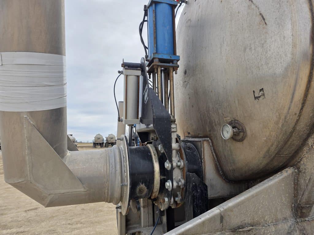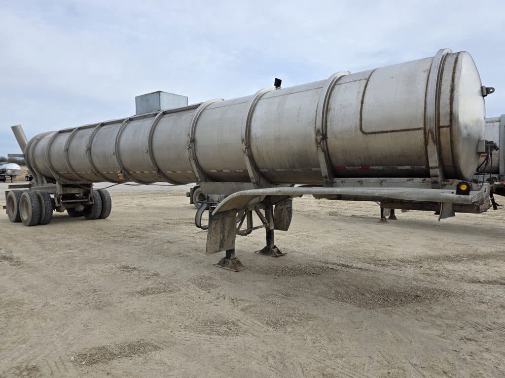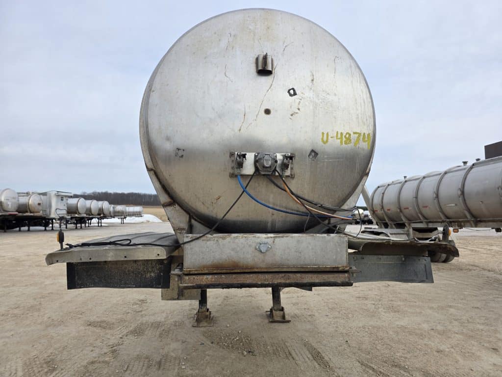 12" Swiveling Rear Unload Semi Tanker. 6200 Gallon Stainless Steel Straight Barrel Semi Tanker, Rear Unload, Steel Landing & Running Gear, 8 Leaf Suspension, 40% Brakes, 50% Tires, 8 Unimount Wheels